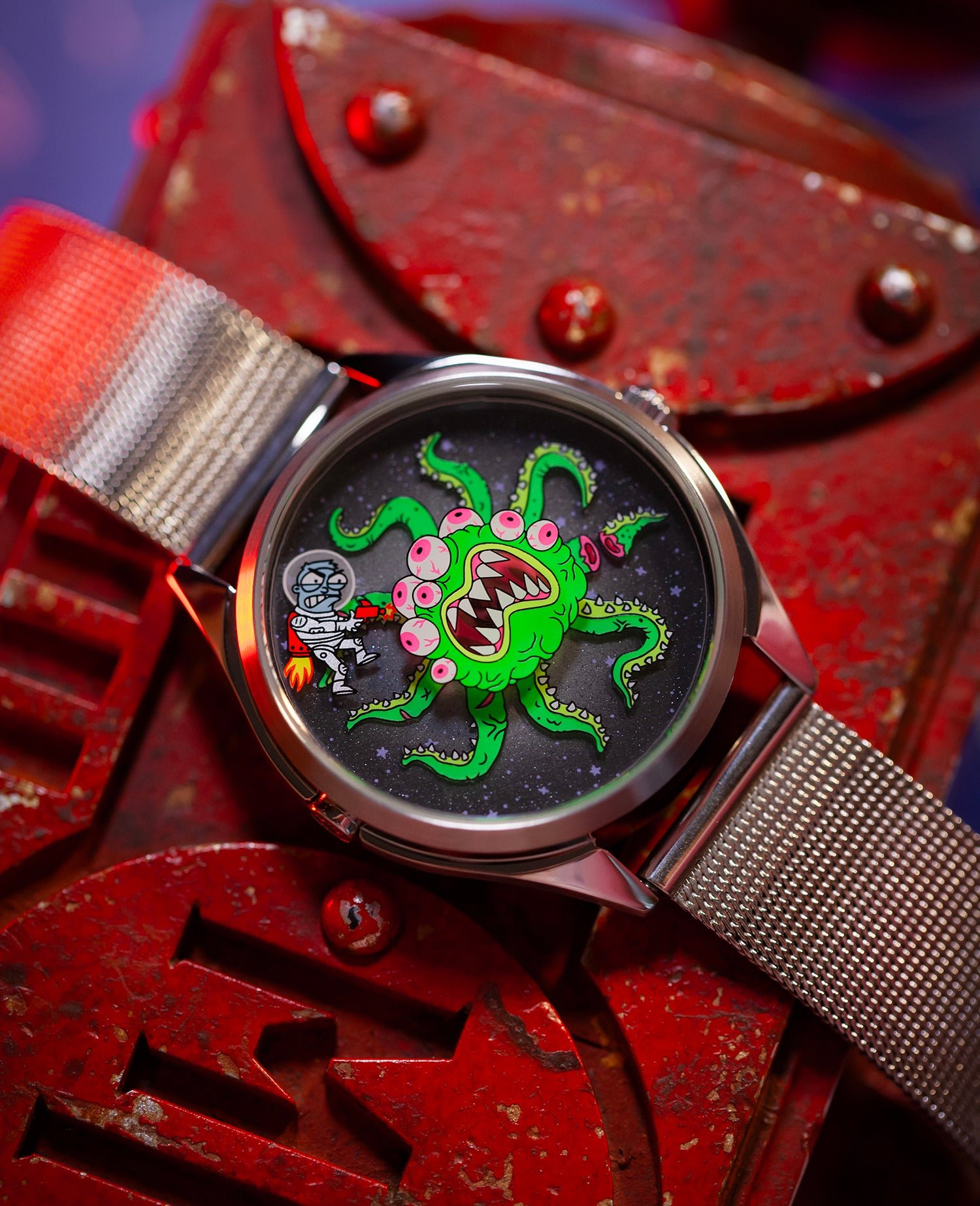 This playful watch is a homage to sci-fi movies and the epic battle between alien and spaceman.