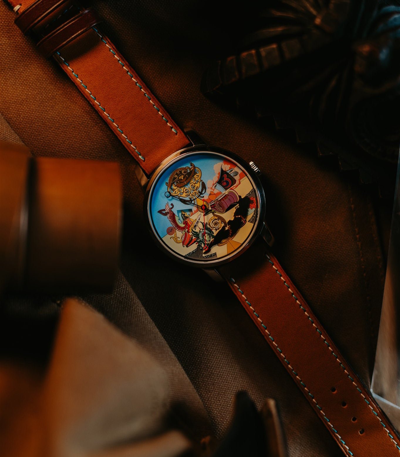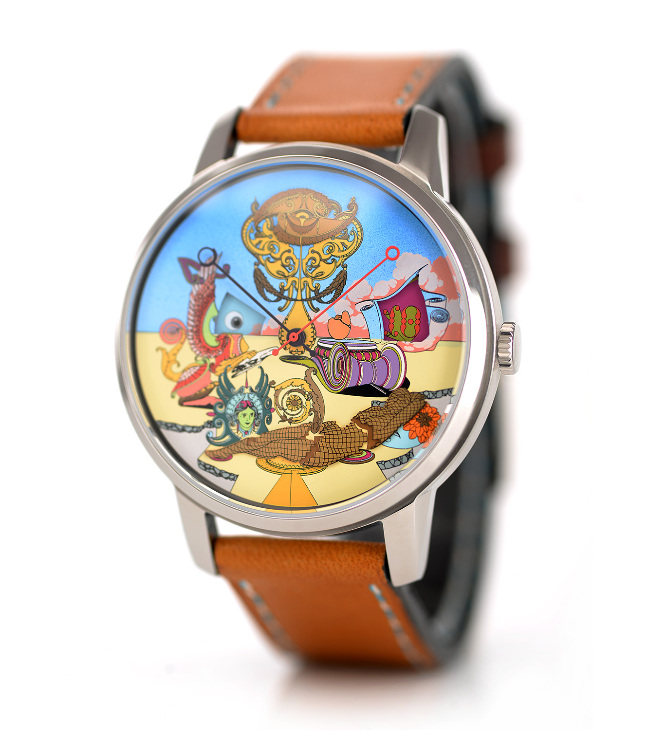 The minute and seconds hands work in the usual way. subtle design cues within the artwork act as markers for reading the position of the hands.
