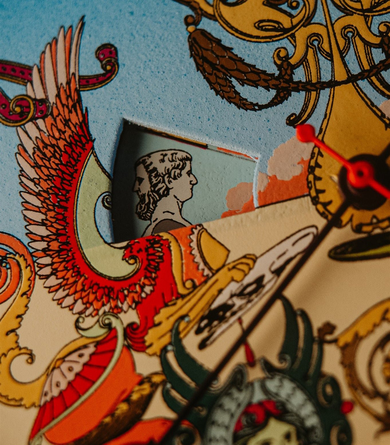 At the same time. you’ll notice the winged sphinx gets a new head. giving you an alternative way to view the different hours of the day.